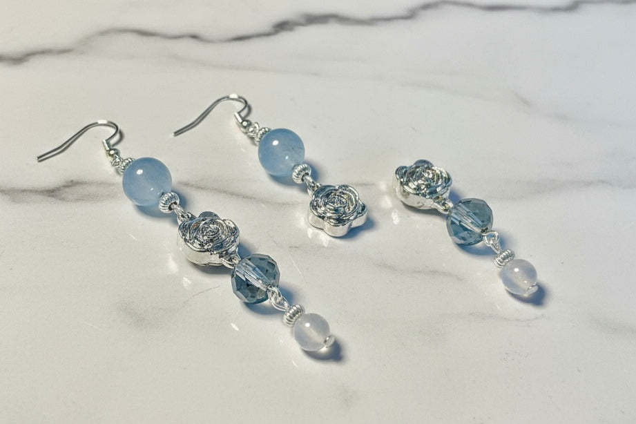 Discover timeless elegance with Celestial Grace - Adjustable Earrings, where semi-precious Blue Jade and White Agate meets sparkling crystal accents in a silver-toned design. The innovative magnetic Rose bead creates two distinct length options, effortlessly transitioning from refined daytime sophistication to glamorous evening occasions.
