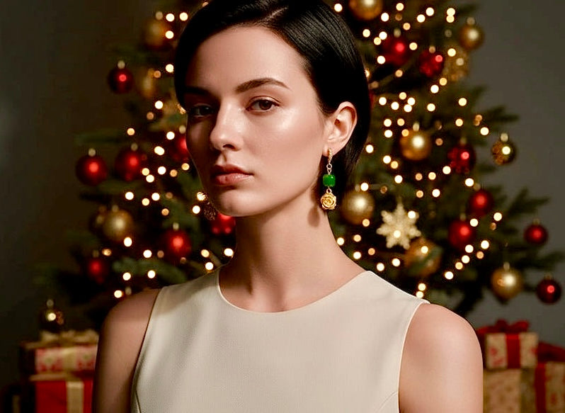 Make a statement with our Scarlet Jade-Adjustable Earrings, combining unique cube shaped Green Jade with cultured red crystal stones precision-cut into diamond facets and set in warm gold tones. A distinctive magnetic Rose bead mechanism offers dual length possibilities, allowing you to transition effortlessly between polished daytime sophistication and elegant evening presentations.